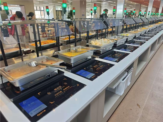 据介绍,智能称重计量多功能一体智能打餐机内置高精度传感器,打菜时实时捕捉菜品重量,精确到克级,自动核算金额,杜绝人工估算误差。用户自主控制取菜量,通过触控面板或感应操作启动出菜,松手即停,可反复添加直至满足需求。支持刷卡、扫码、人脸支付等多种方式,称重完成后自动跳转支付页面,1秒完成结算。后台自动记录菜品消耗量、用户取餐量、热销菜品排行等数据,支持导出报表,辅助食堂优化菜品与采购。